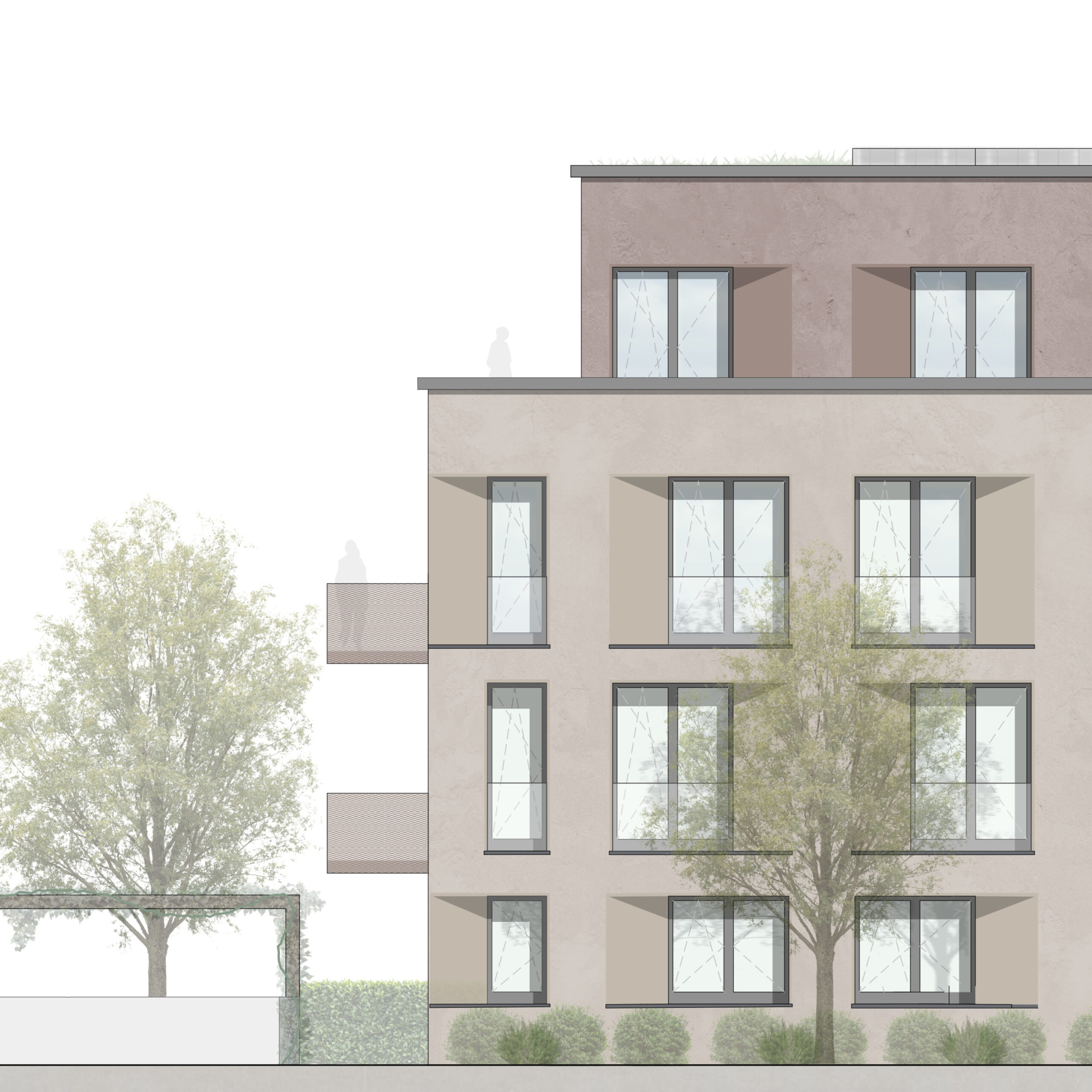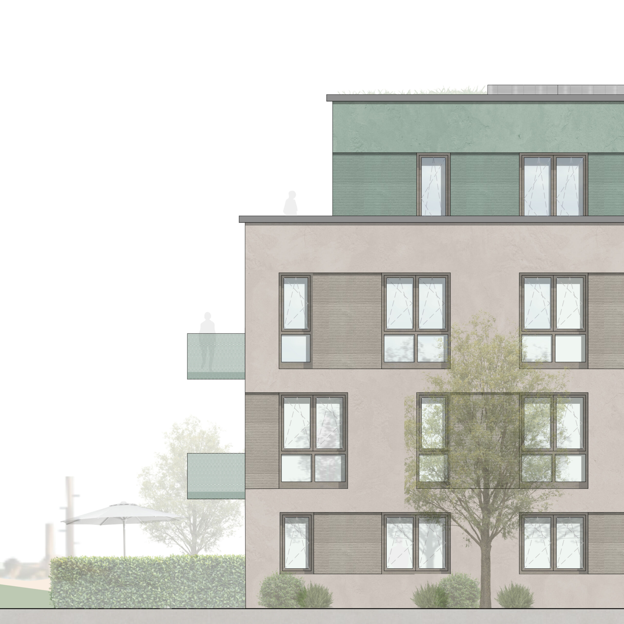 Die Kölner Wohnungsgenossenschaft eG beabsichtigt, das Grundstück Am Höfenweg 46 – 76 in Köln-Merkenich grundlegend neu zu entwickeln. Ausgangspunkt ist der hohe Bedarf an zusätzlichen, modernen und bezahlbaren Wohnungen sowie an dringend benötigten Kinderbetreuungsplätzen im Stadtteil. Die nicht mehr sanierungsfähige Bausubstanz aus den 1930er Jahren wird abgebrochen und durch sechs neue Mehrfamilienhäuser sowie eine fünfgruppige Kindertagesstätte ersetzt. Vorgesehen sind vier straßenbegleitende Gebäude mit drei Vollgeschossen plus Staffelgeschoss sowie zwei kleinere Häuser im rückwärtigen Bereich mit zwei Vollgeschossen plus Staffelgeschoss und Flachdächern.